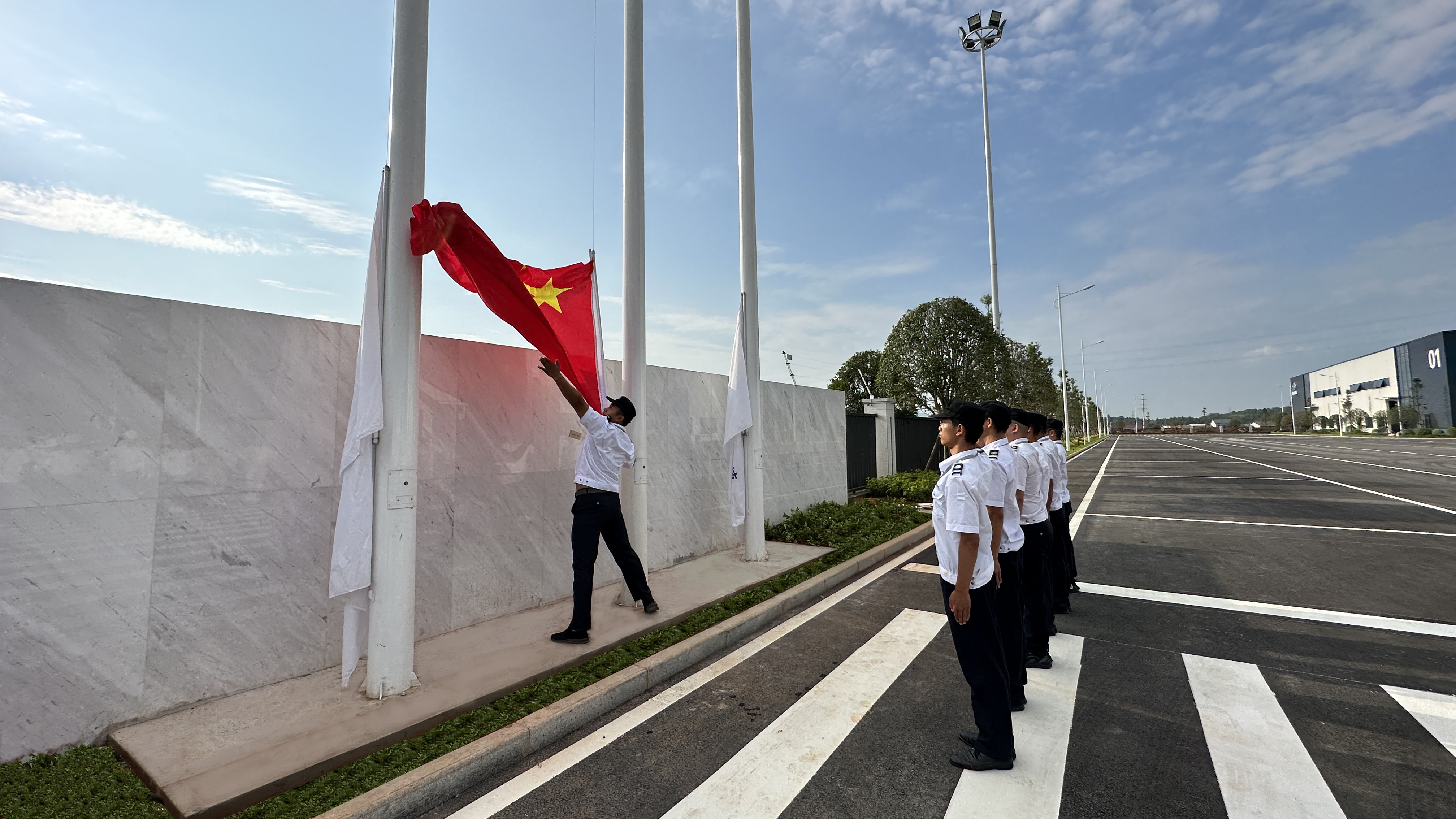 今天7時30分,鑫政科技新能源產業園舉行升旗儀式,